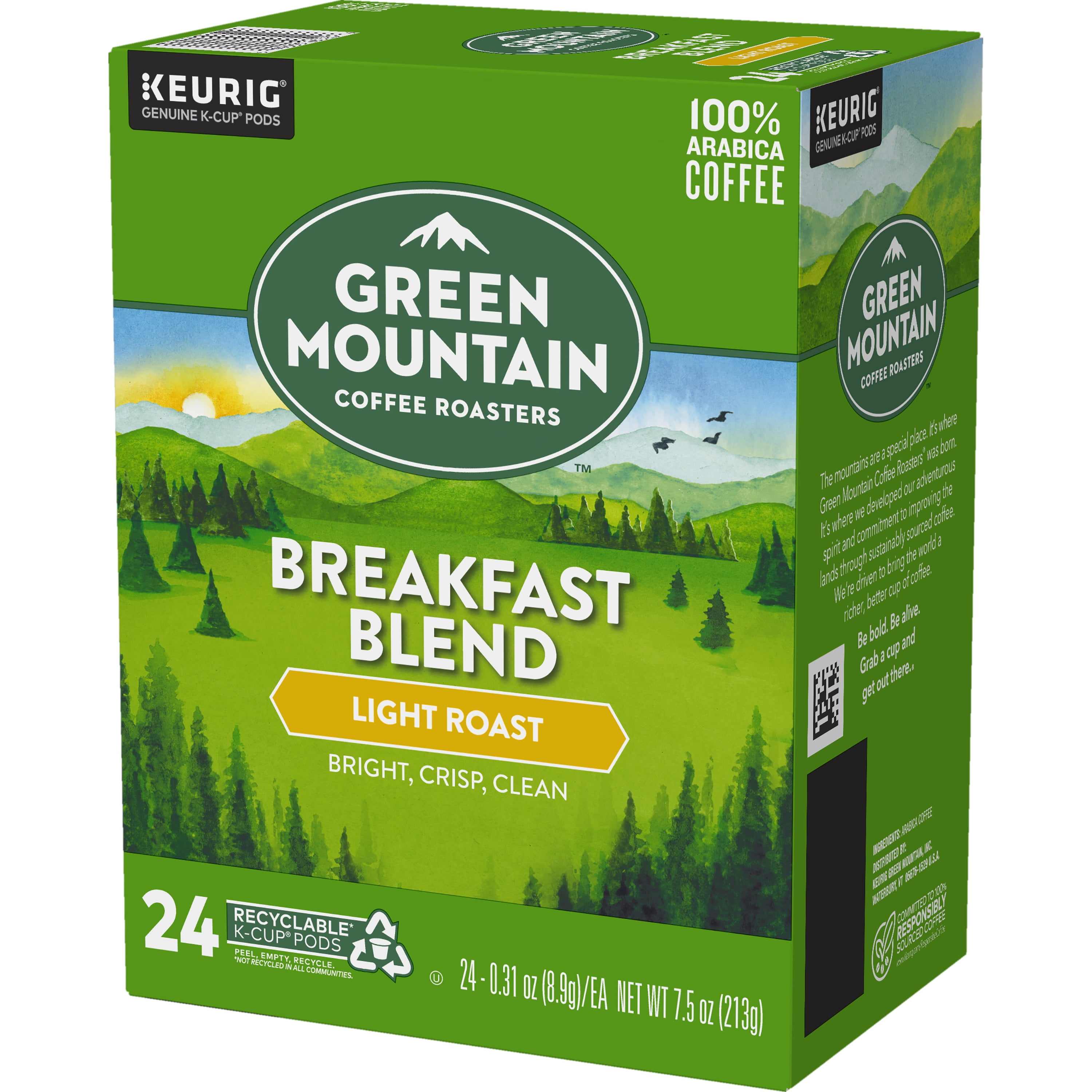 Green Mountain Coffee Breakfast Blend K Cup Pods Light Roast 24 Count For Keurig Brewers Walmart Com